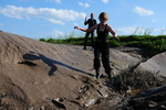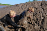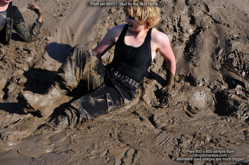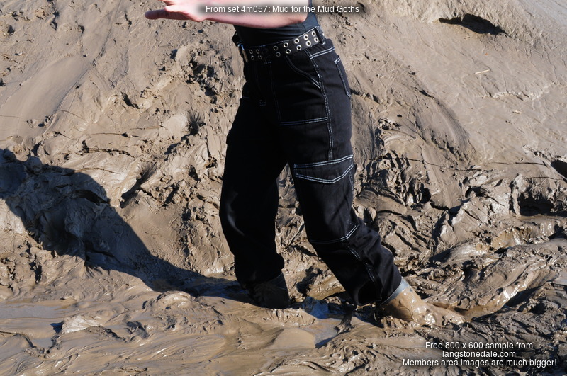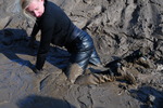 The mud was deep and thick and sticky this day, Roxanne goes in first, wading into the gully-bottom pool, getting rather stuck, and then falling back to sit with a splat in the mud, coating the seat and back legs of her cargo pants while her boots completely disapper in the gloop. Then she sits on the side of the gully and invites Aurora to join her, which Aurora does by dropping to all fours and crawling down the slope, the mud getting softer and wetter as she goes, until her hands, and those lovely suede boots, are being engulfed as she reaches the bottom of the gully and crawls forwards into the thick deep liquid mud.