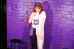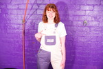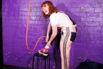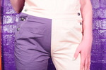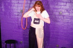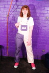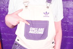 Dressed in a pair of "Girls are Great" pink and purple dungarees over a white t-shirt and pink, black, and white Converse basketball boots, Miss Abigail sticks the dungeon hose down the front of her dungarees and asks the Water Fairy to turn the water on. Because it takes a moment for the boiler to fire up, the initial flow of water flooding inside her clothes is freezing cold, and Abigail squeaks in reaction as the cold water erupts downwards through her dungarees, visibly soaking them as it goes. After a moment the heating kicks in and the water rises to a comfortable temperature, and Miss Abigail goes on to enjoy thoroughly drenching her outfit and shoes until she's utterly soaked.