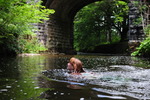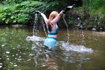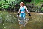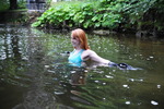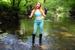 As High Summer approaches in Langstonedale, Lily has decided it's time for some fully clothed soakings. Today she's going to take to the estate river by the viaduct while dressed in skin tight pale green running leggings and matching bra-top, but finished off with rubber riding boots and big black rubber gloves, just to make things a bit kinkier.
