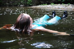 She swims and splashes and floods her gloves before raising them up so the water cascades down over her wet clothes, and generally has a great time enjoying being soaking wet, fully clothed.